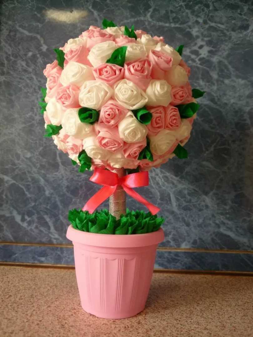Такой изящной поделкой можно украсить праздничный стол или банкетный зал. Необыкновенным будет горшок с цветами из таких китайских розочек. Рекомендуется изящно оформить ею любую подарочную упаковку.