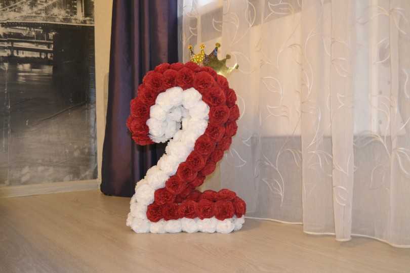 Объемные буквы и цифры из салфеток смотрятся более ярко и впечатляюще. На их создание потребуется немного больше времени. Следуя пошаговой инструкции, представленной выше, изготавливается первая часть. После этого, необходимо выполнить еще несколько действий.