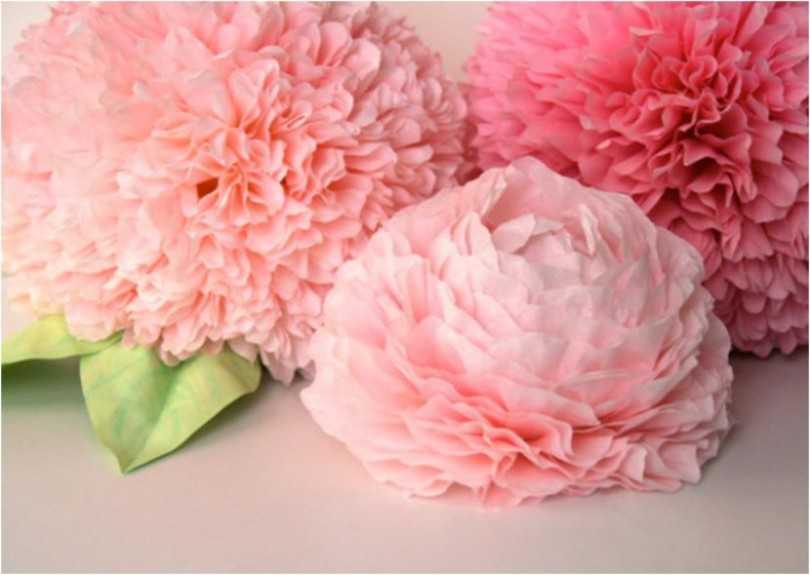 Гофрированная бумага, отличный материал во многих отношениях, приложив немного усилий, из нее можно создавать цветы и листья, которые не отличить от настоящих. Посмотрите, как сделать волшебные пионы из гофрированной бумаги своими руками, разве они не прекрасны? Вырежьте лепестки, бахрому и листья, используя шаблон на сайте. Украсьте лепестки кистью, смоченной в краске – вы можете добавить омбре, простые точки или полосы. Не используйте водянистые краски: они вытягивают цвет из гофрированной бумаги. Самая важная часть, когда делаете реалистичные лепестки для цветов из гофрированной бумаги, это «купирование». Чтобы сложить лепестки, возьмите их между большими и указательными пальцами обеих рук (большие пальцы сверху)