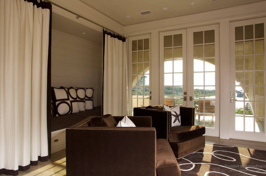 Если же выбраны более светлые и спокойные оттенки шоколадного, то ими вполне можно украсить и менее освещенные комнаты.