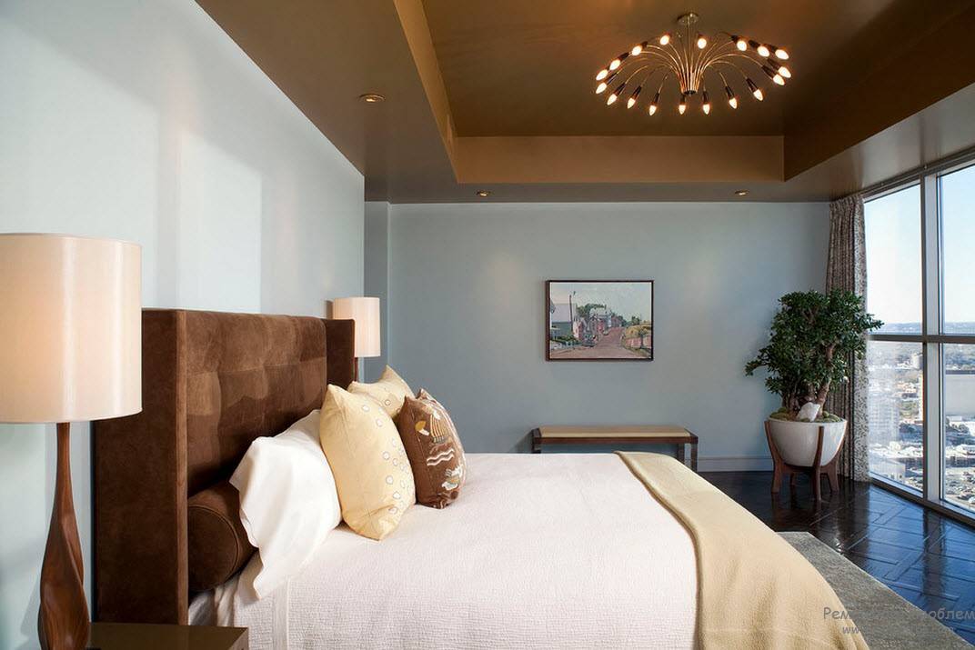 Современную мебель нетрудно подобрать или сделать на заказ любого, в том числе и выбранного вами цвета. Даже если бюджет не позволяет натурального дерева, сегодня делают качественный шпон, визуально неотличимый от него. Если планируется мебель темно-шоколадных оттенков, то оформляйте стены и потолок в светлых тонах. Если же шоколадная сама комната, светлая мебель тех же или контрастных оттенков будет смотреться очень выигрышно.