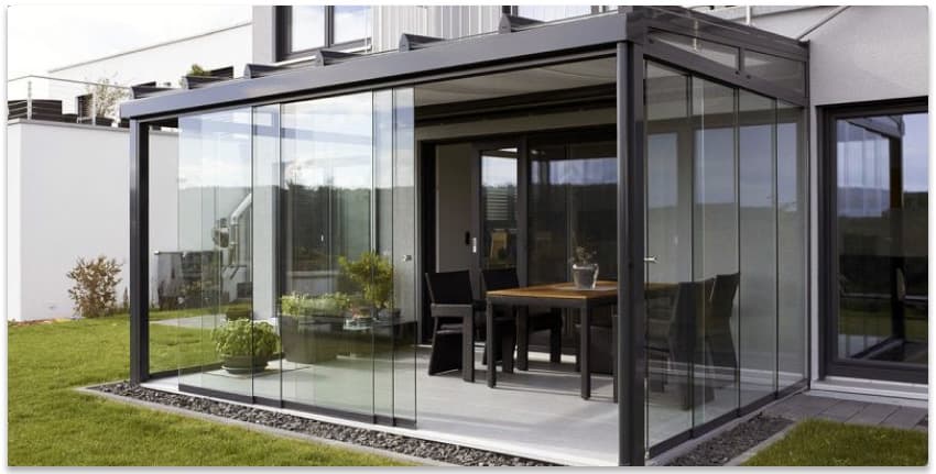 - Металл — алюминиевые сплавы и сталь, из которых делают профили каркаса, сохранению тепла не способствует, так как имеет высокий коэффициент теплопроводности. Однако этот вопрос решается за счёт установки в профили полиамидных вкладышей. Такой профиль позволяет не только устроить зимний сад на веранде в частном доме, но и остеклить террасу, к примеру, на крыше.
