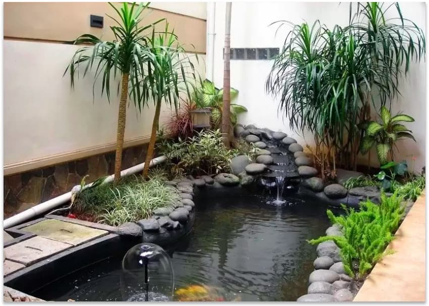 • Желательно соорудить в зимнем саду хотя бы миниатюрный водоем. Это может быть маленький фонтанчик, небольшой пруд. Водные элементы не только идеально украшают сад, но и являются источником влаги, участвуют в поддержании комфортного микроклимата.