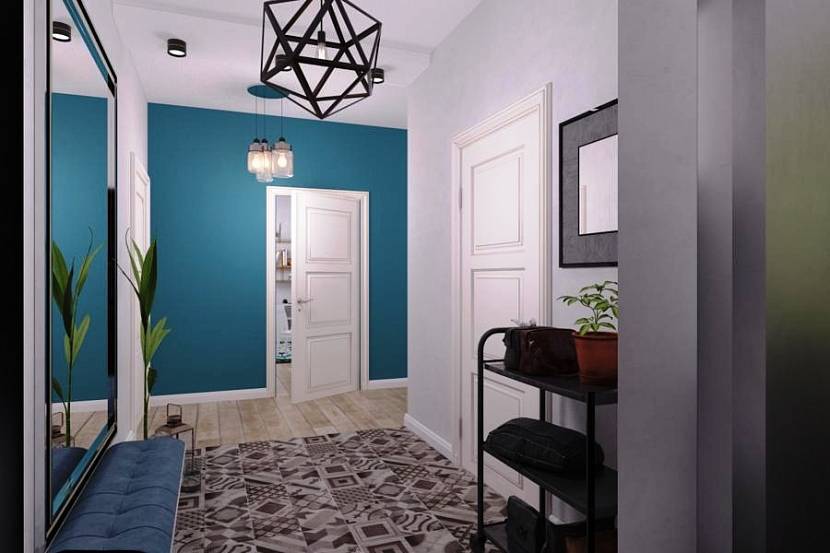 Интересным и функциональным решением станет комбинирование двух или трёх отделочных материалов, например, около входа укладывается плитка (керамогранит), а в остальной части помещения ламинат.