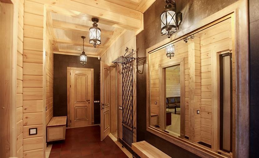 Один из модных в настоящее время направлений – старинный стиль. Ретро предметы, искусственно состаренная мебель, сундуки создадут неповторимый дизайн коридора в деревянном доме.