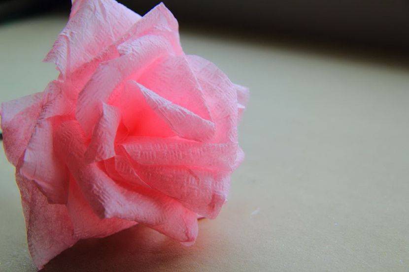 Из крепированной бумаги можно сделать розу немного усложненным способом – приняться за приготовление и дальнейший сбор лепестков в отдельности.