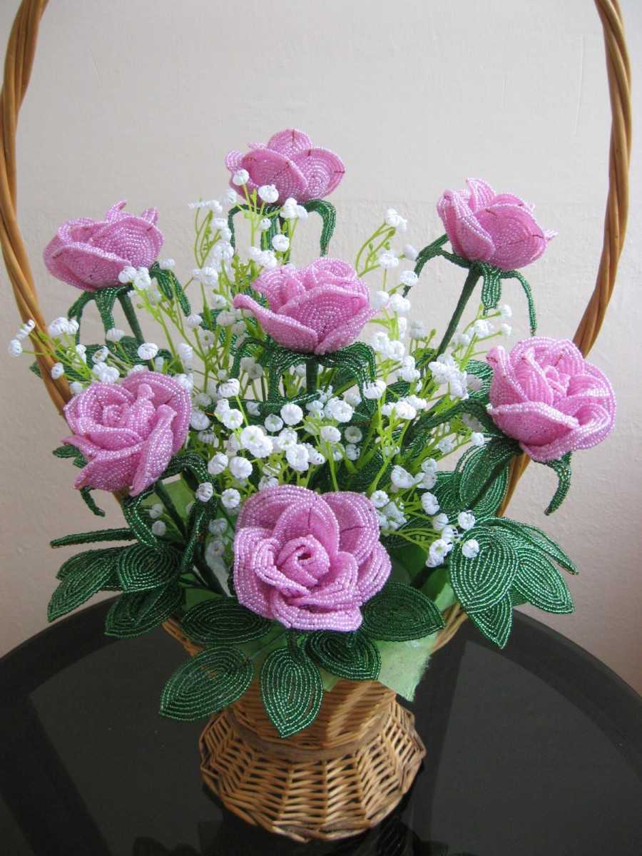 Изготавливаем непарное число роз, прикрепляем им листья, оформляем на подставку