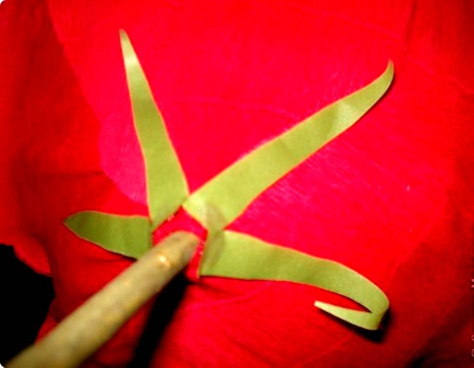 13. Далее из зеленой бумаги вырежьте чашелистик.