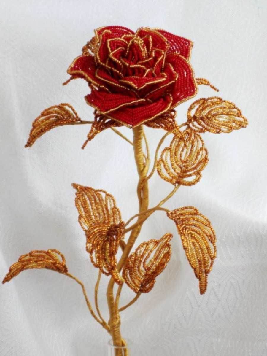 На этом роза с пышным бутоном и стеблем с листьями готова. Сделайте таких несколько штук, чтобы создать прекрасный букет. Просто установите его в вазу, чтобы можно было любоваться им все время.