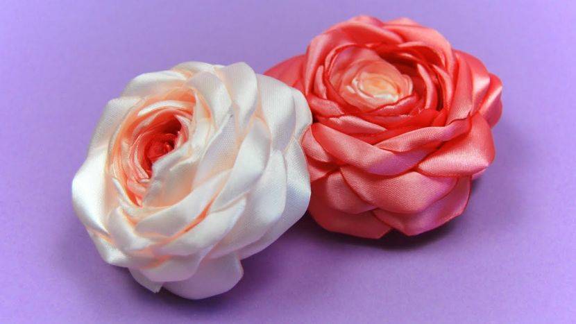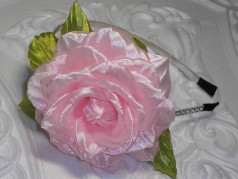 Важным моментом в приведенном способе считается выбор ширины ленты для изготовления лепестков. Так, если взять большую ширину, к примеру, в 8-9 см, роза получится более пышной. В этом случае потребуется развернуть и немного закрутить лепестки, чтобы весь бутон получился аккуратным и привлекательным.