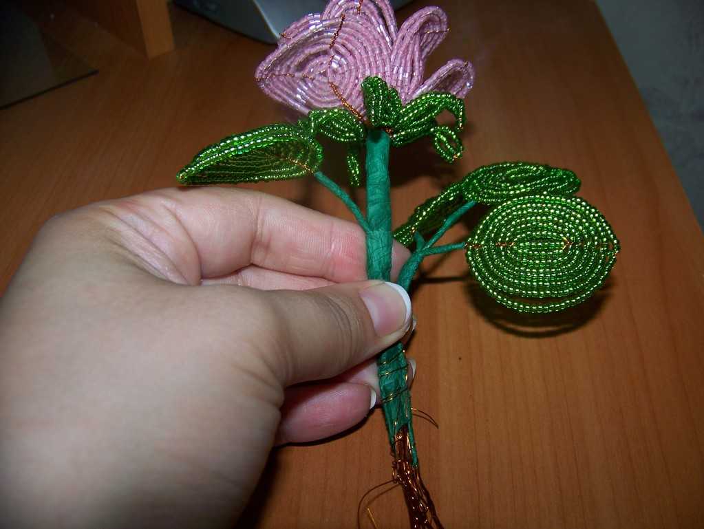 15. И приклейте к бутону и стебельку только основание, а сами листики немного отогните.