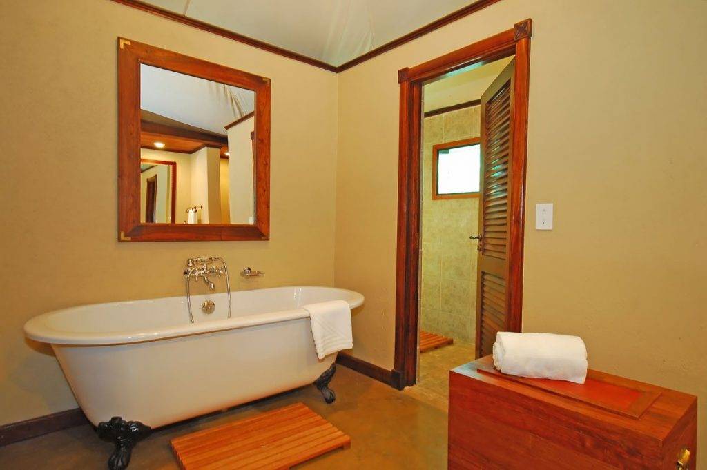 Деревянная вагонка часто используется для отделки стен просторных ванн в загородных домах