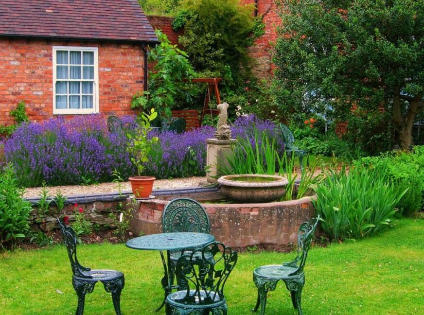 В английских парках часто можно встретить небольшие фонтанчики и роднички. Однако смотрите, чтобы они не были явно вызывающего вида либо неприродного цвета – на них не должен останавливаться взгляд!