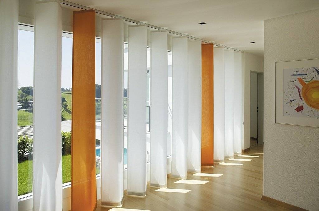 Если рассматривать модель штор, похожую на жалюзи, она состоит из нескольких одинаковых панелей полотна, которые накладываются друг на друга. В закрытом состоянии они размещаются друг возле друга, полностью закрывая пространство за собой, будь то оконный проем или свободное пространство за ними.
