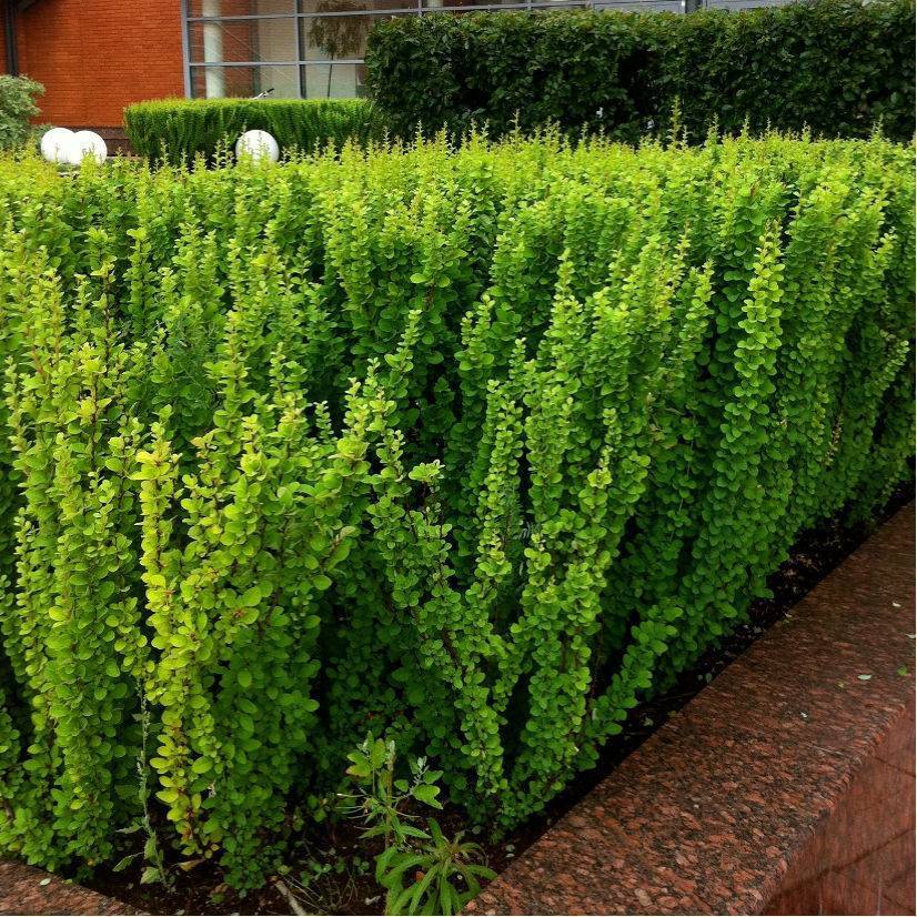 Эффектные сорта барбариса Тунберга подойдут, если вам нужна невысокая зеленая изгородь (около 50 см высотой).