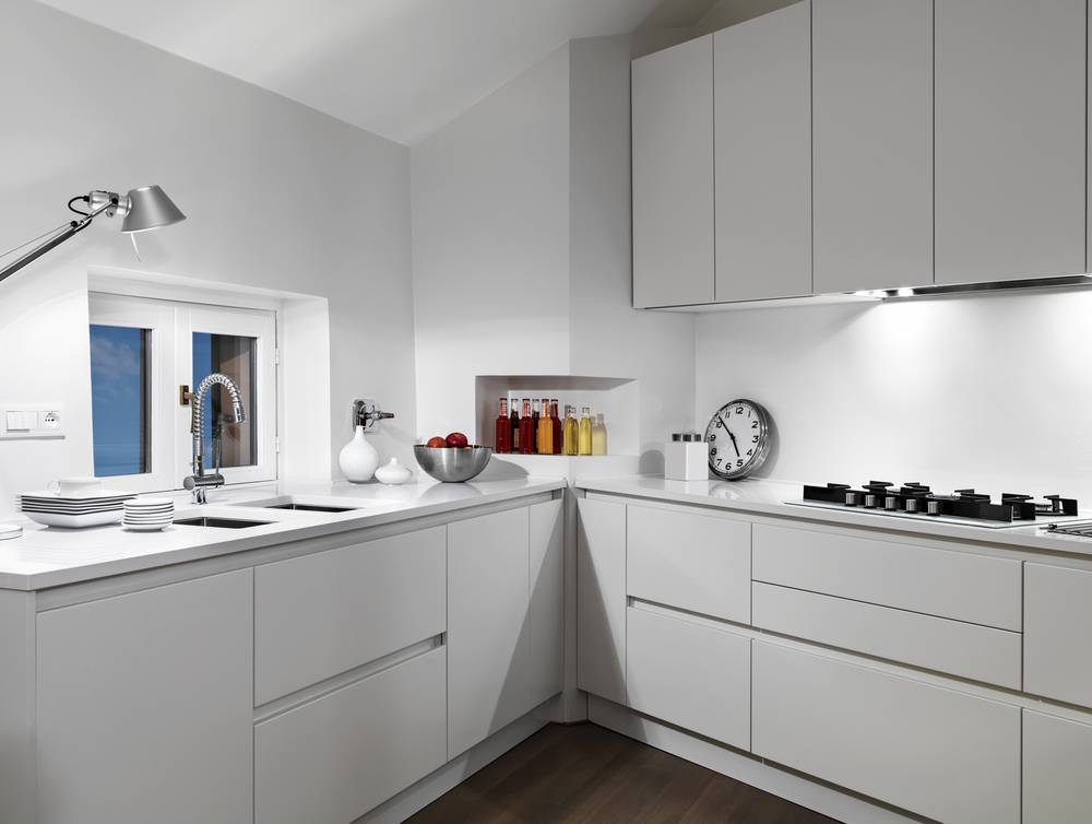 Белые фасады изготавливаются из таких же материалов, как и корпус, а также из пластика и акрила, которые легки в уходе и не боятся царапин.