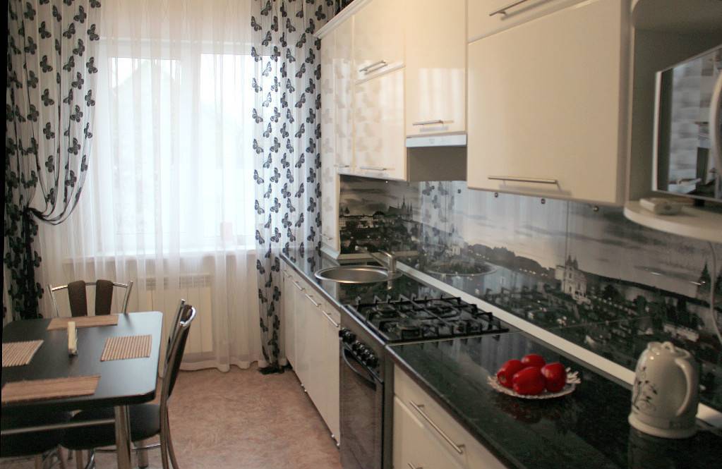 Выбор штор для черно-белой кухни