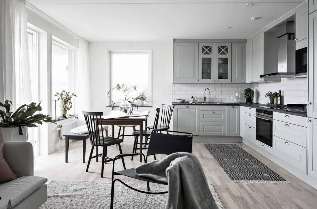 Отсутствие напыщенности и лишнего количества мебели, только нужные и функциональные предметы интерьера – вот скандинавский лозунг. Если вы обладатель небольшой кухни, то минималистический скандинавский подход вам придется по душе. Этот стиль приветствует только необходимый декор с использованием натуральных материалов.