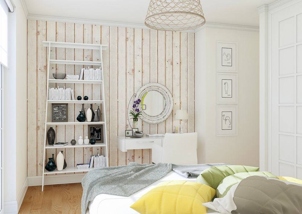 - в маленьких комнатах предпочтение стоит отдать открытым полкам, стеллажам, узким шкафчикам, они не загромождают пространство;