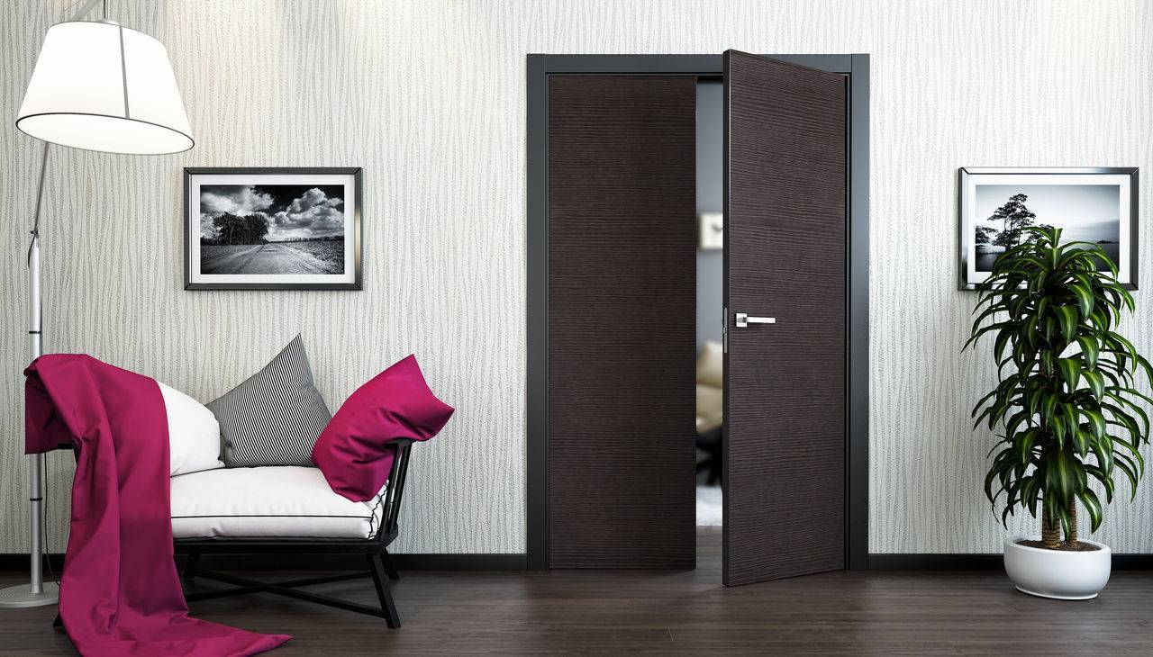 Некоторые тона дверного полотна настолько красивы, что кажутся привлекательными, особенно если больше нет ничего темного. Таким свойством обладает африканский палисандр или венге с неподражаемой игрой коричневых оттенков.