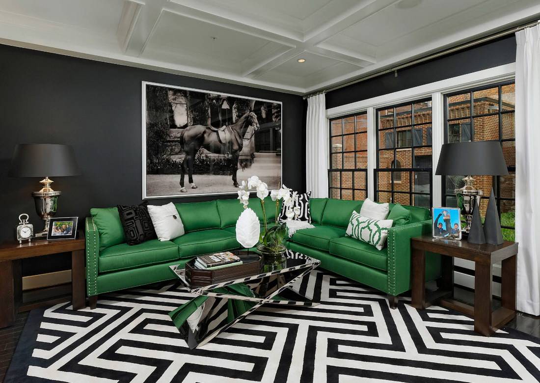 Кроме того, акцентный диван может быть поддержан присутствием красного цвета в орнаменте отделки или обивки.