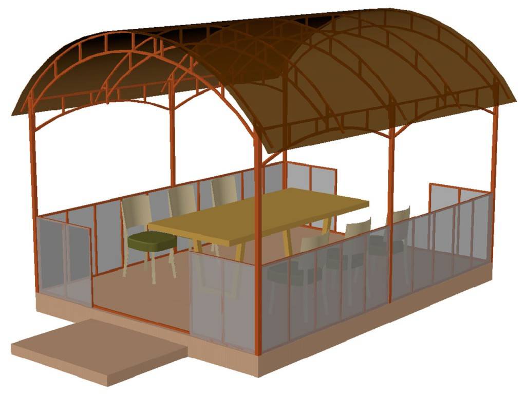 - Полузакрытого типа. В этом варианте часть пространства закрыта стенками, что позволяет продолжать застолье во время начавшегося дождя.
