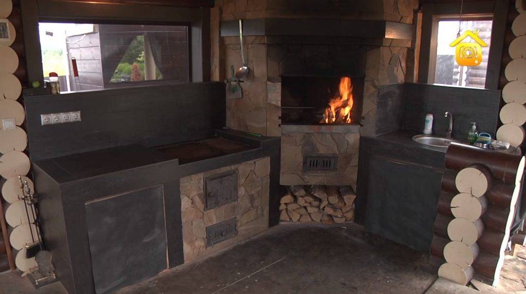 Полноценная летняя кухня в беседке с печкой и мангаломИсточник prokuhni.info