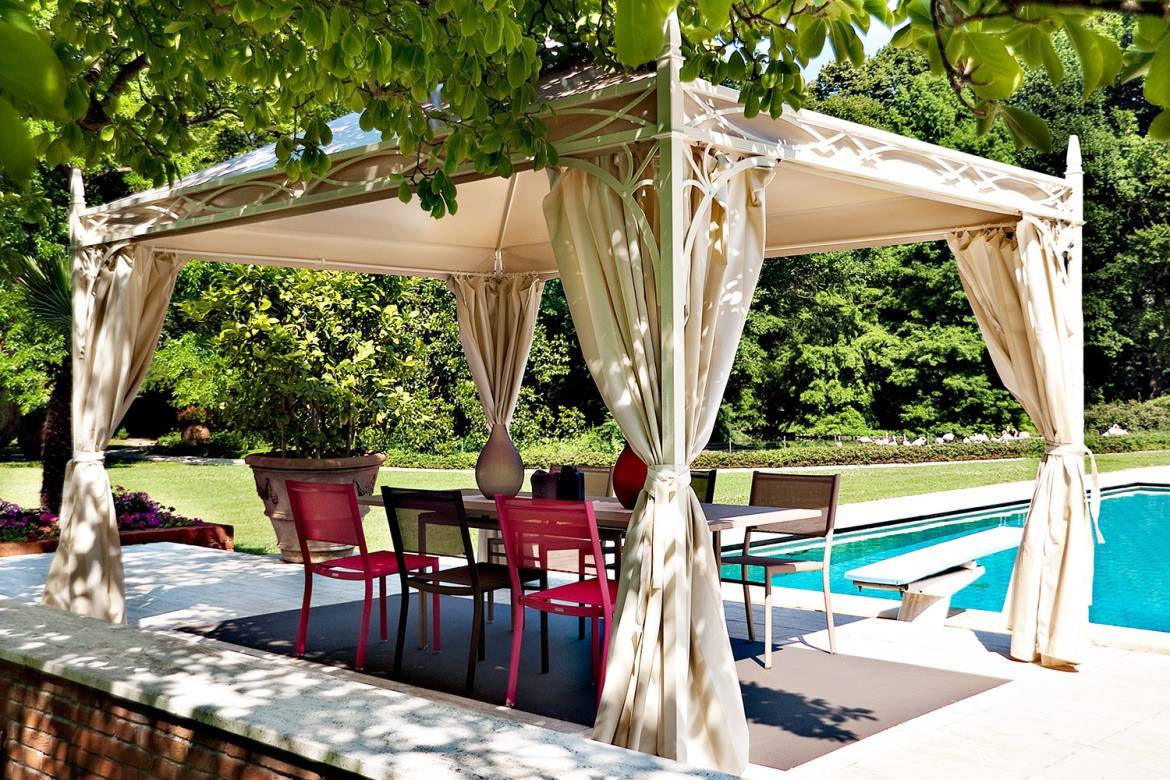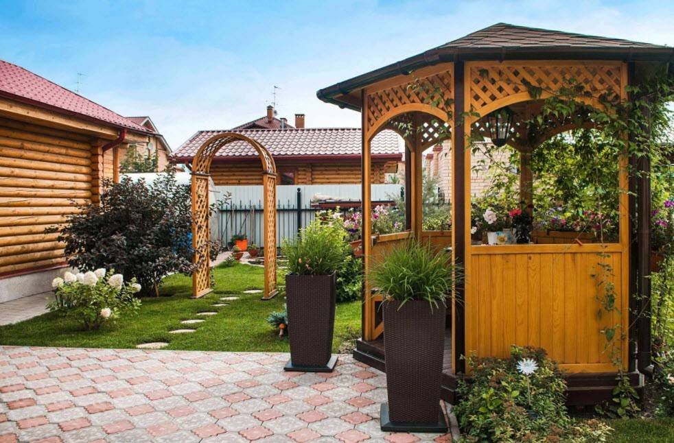 Павильоны — это оборудование, которое обеспечивает укрытие от дождя или сильных порывов ветра. Садовая архитектура также будет хорошо работать в летние дни, позволяя спрятаться от солнечных лучей.