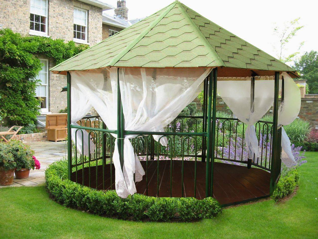 По причине деликатности дерева все больше людей предпочитают использовать более долговечные материалы, такие как алюминий, металлические пластины на крышах и легкий, но чрезвычайно прочный поликарбонат. Павильоны, изготовленные из этого материала, обычно представляют собой простые конструкции, которые идеально сочетаются с садами, оформленными в современном стиле. Они долговечные и практичные. Однако, если решили сделать поликарбонатную кровлю, то должны учитывать более высокие расходы.