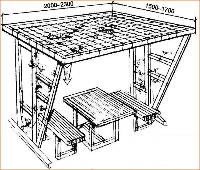 Для защиты внутреннего пространства от солнца вдоль стен беседки можно посадить вьющиеся растения