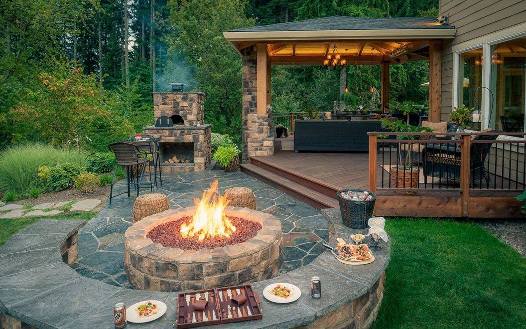 - Соблюдены строительные нормы. Это значит, что постройка удалена от соседнего участка не меньше, чем на 3 метра, скат её крыши обращён внутрь участка, а не на сторону соседей, соблюдено расположение относительно коммуникаций на даче. Подвод воды и электричества должен быть безопасным. Организация мангала или камина внутри требует соблюдения определенных правил: использование жаропрочных материалов, правильно организованный дымоотвод, наличие защитного «фартука» вокруг камина.