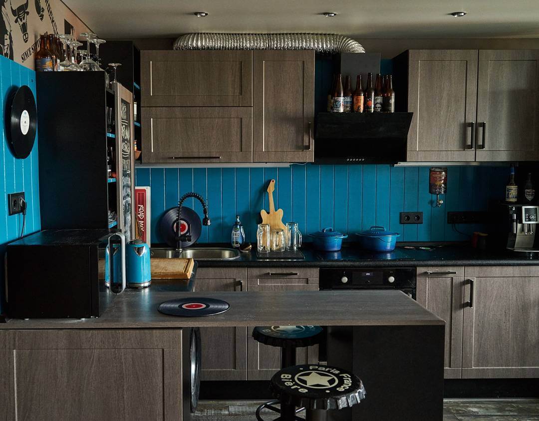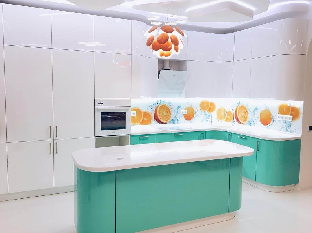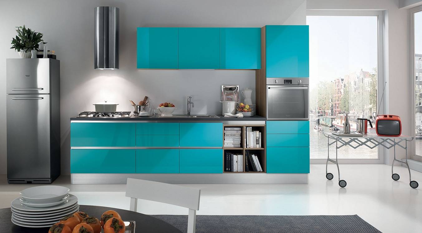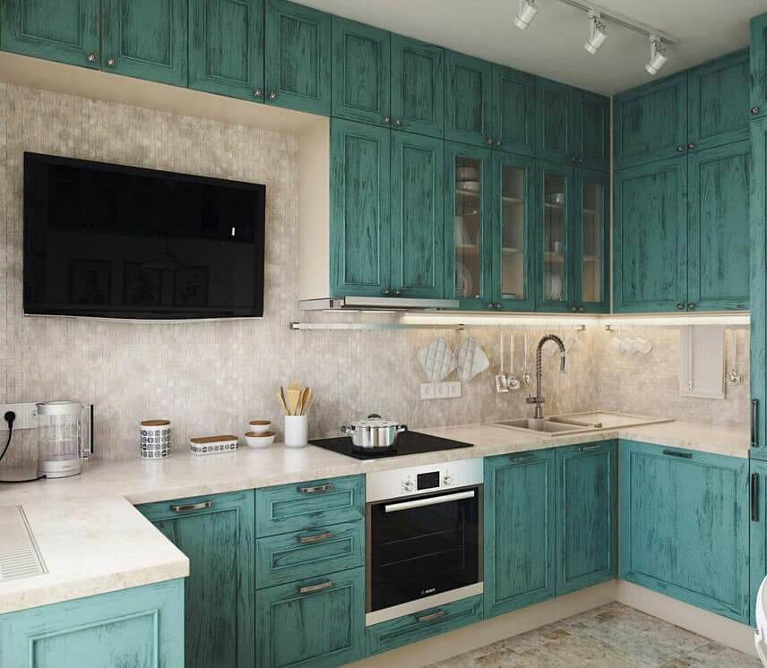 Бирюзовый цвет в интерьере кухни