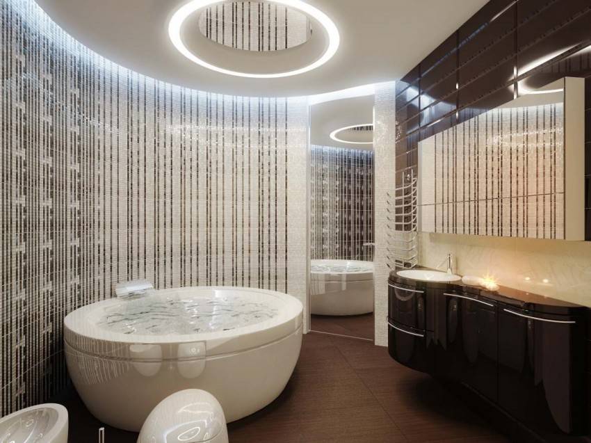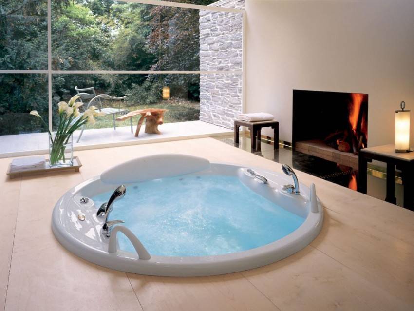 Если посмотреть старинные картины, то можно заметить, что на них царицы, богини выходят как раз из купелей круглой формы. По этой причине вы должны понимать, что ванная должна быть определенным образом обыграна в интерьере комнаты