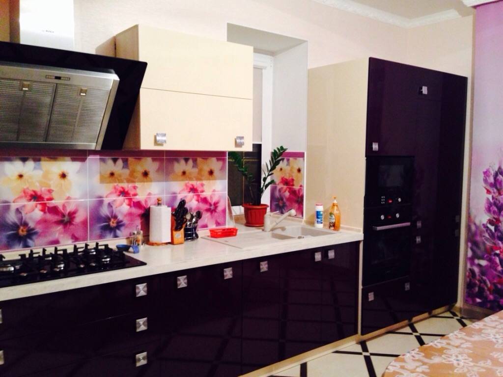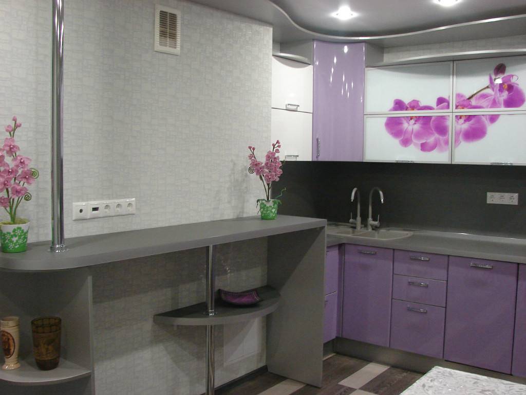 Фиолетовый и черный — чтобы не превратить свою кухню в мрачный и темный чулан, черный цвет в ее интерьере необходимо сочетать с максимально светлыми оттенками фиолетового. Обязательно должен присутствовать белый тон, который станет общим фоном для подобранной палитры. В черном цвете может быть выполнена бытовая техника, фурнитура, некоторые декоративные элементы.