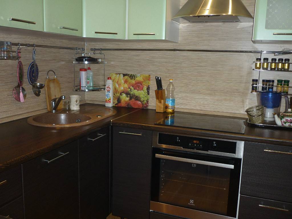 В заключение хочется обратить ваше внимание на момент, связанный с выбором отделки для кухни. Если вы остановились на подобном варианте кухни, то обои лучше всего выбрать другого цвета, более спокойного, нейтрального