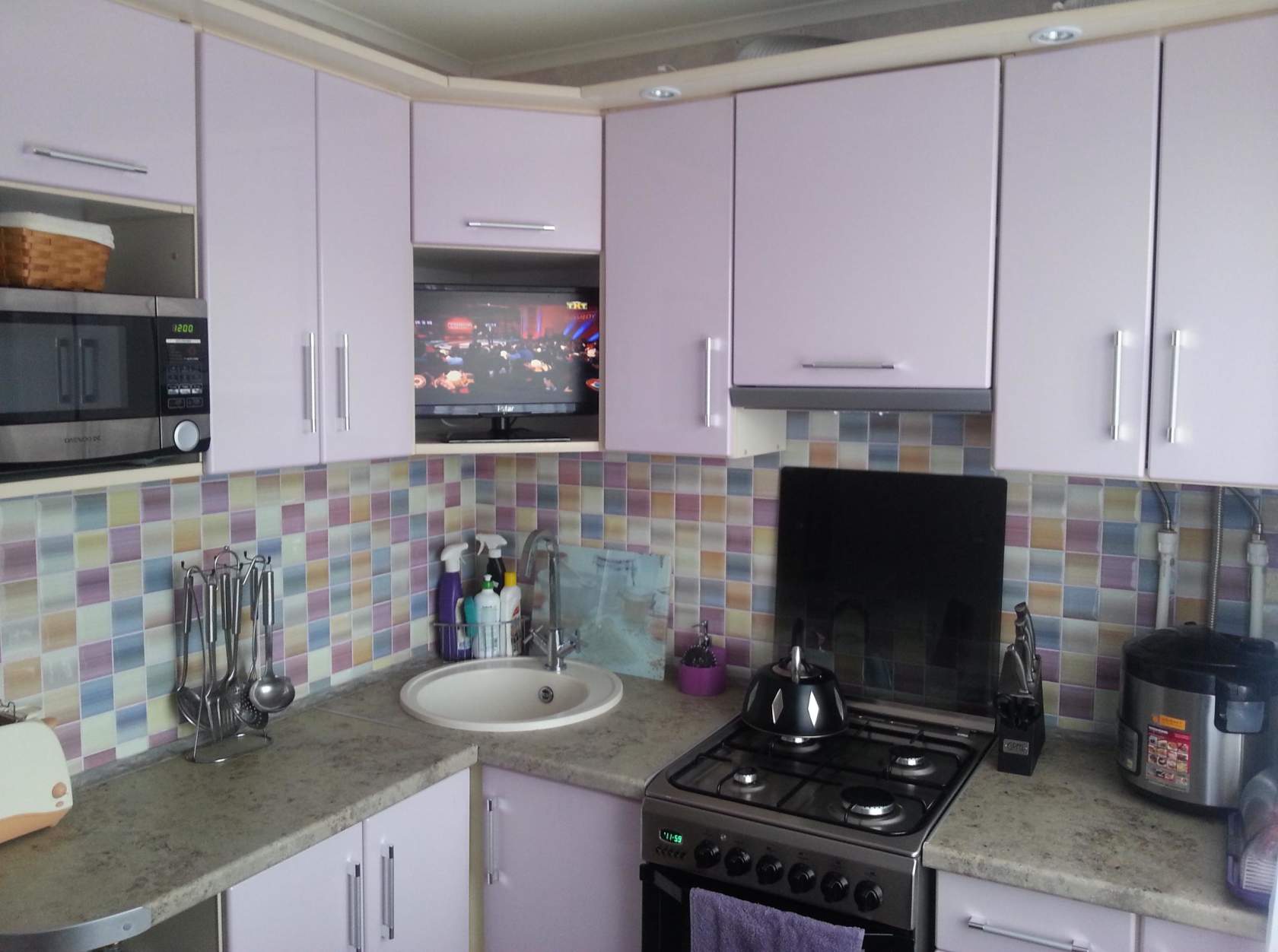 Фиолетовый и зеленый — с помощью сочетания таких оттенков можно неплохо оживить интерьер своей кухни, сделать его нескучным и очень легким