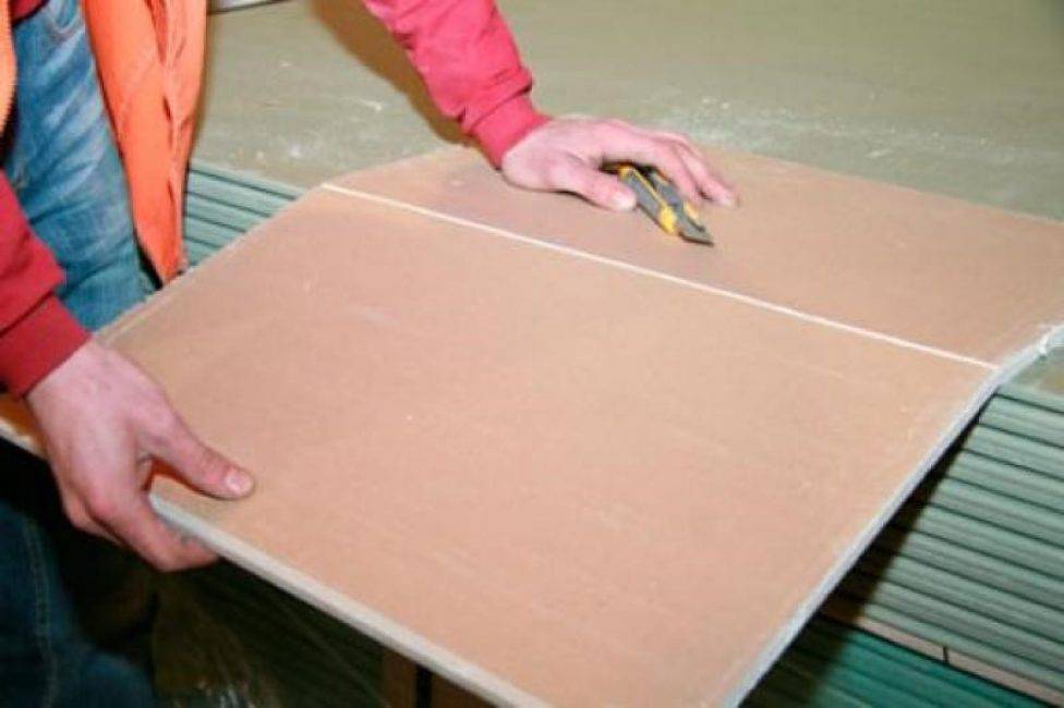 Здесь важно точно нанести на лист размеры проема и вырезать необходимый участок по контуру. Для этого вам потребуется всего лишь острый строительный нож