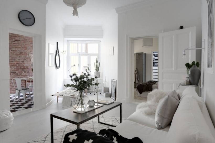 В целом преобладание того или иного цвета в интерьере черно-белой гостиной зависит от следующих факторов:
