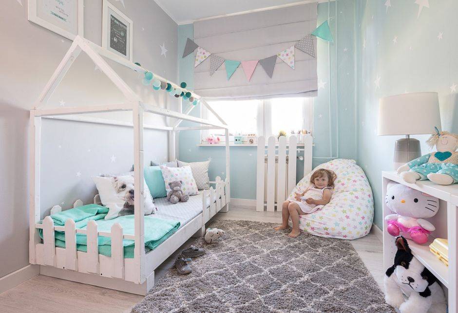 Хорошим шагом будет подобрать необычное оформление комнаты — например, под кирпичную кладку или космический корабль. Также не заставляйте ребёнка ходить по голому полу — обязательно положите качественный ковёр.