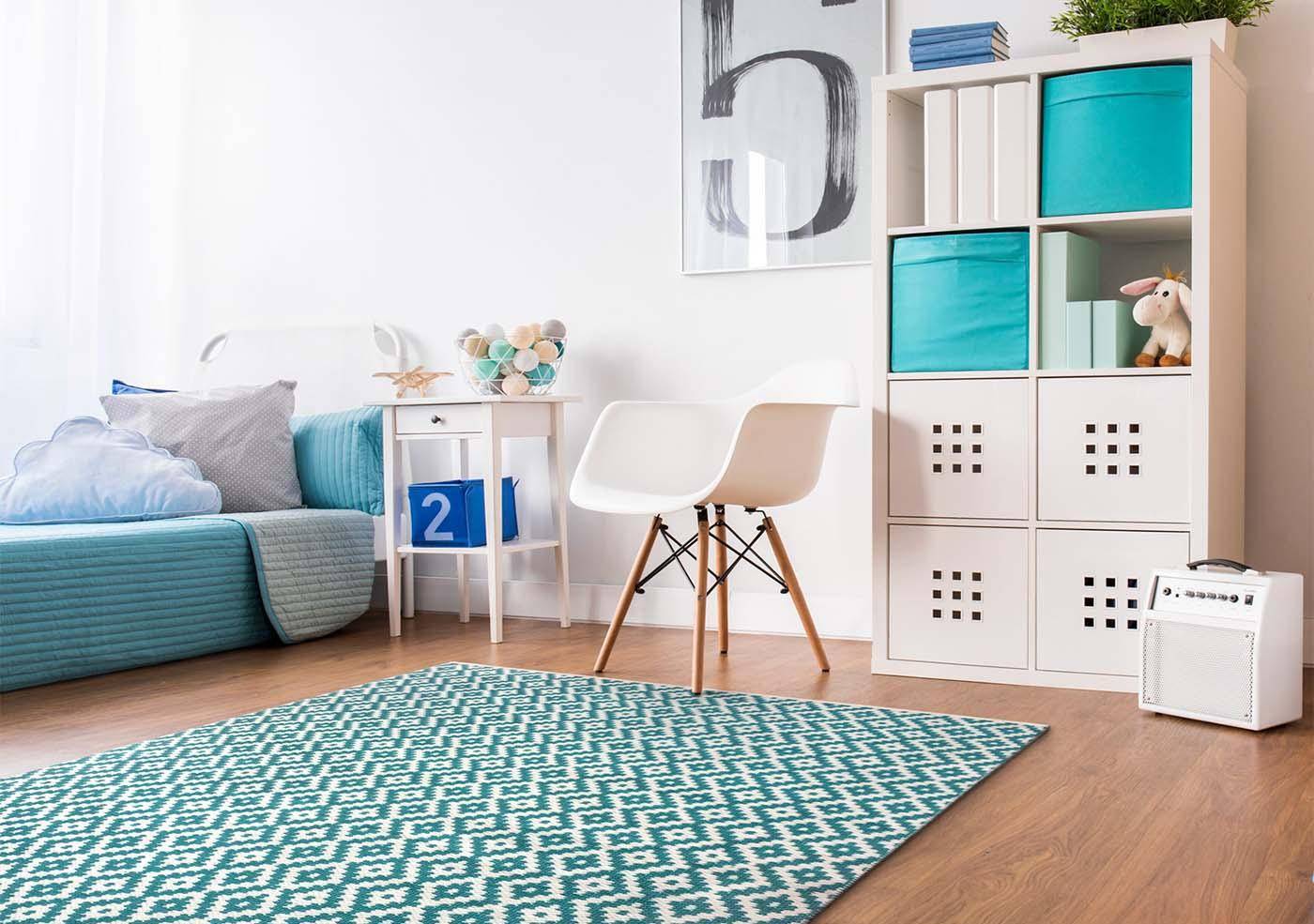 Бирюза с голубоватым оттенком – модный тон, который легко воплощается в интерьерах разных стилей. Сине-зеленый дизайн органично смотрится в любое время года. Цвет Тиффани незаменим при оформлении рабочего уголка в гостиной, ведь он помогает снять напряжение с глаз и задает бодрое настроение.