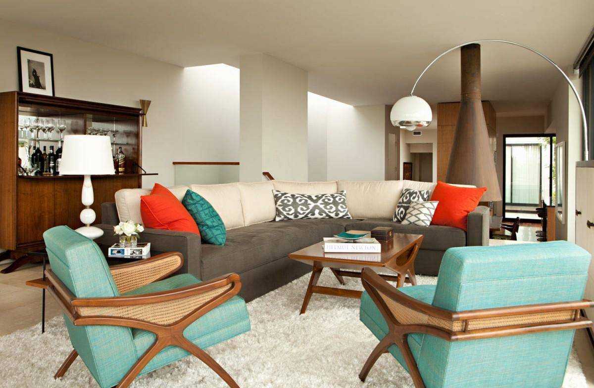 Способность сине-зеленой гаммы гармонично вписываться в интерьер ценят дизайнеры. Бирюза может быть основой обстановки, а может присутствовать в виде сочных акцентов. Причем всевозможные цветовые сочетания способны придавать залу разные настроения, все зависит от предпочтений хозяев и дизайнерского стиля.