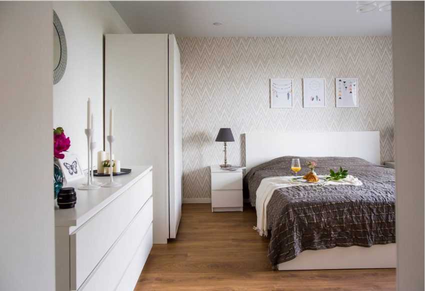 - Белые обои в интерьере спальни наиболее распространены в скандинавском стиле. Он признан лучшим для отделки спальни, так как наполняет её светом и делает масштабнее по объемам. Яркие детали привносят в такую спальню тёплые акценты и уют.