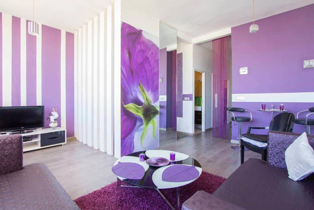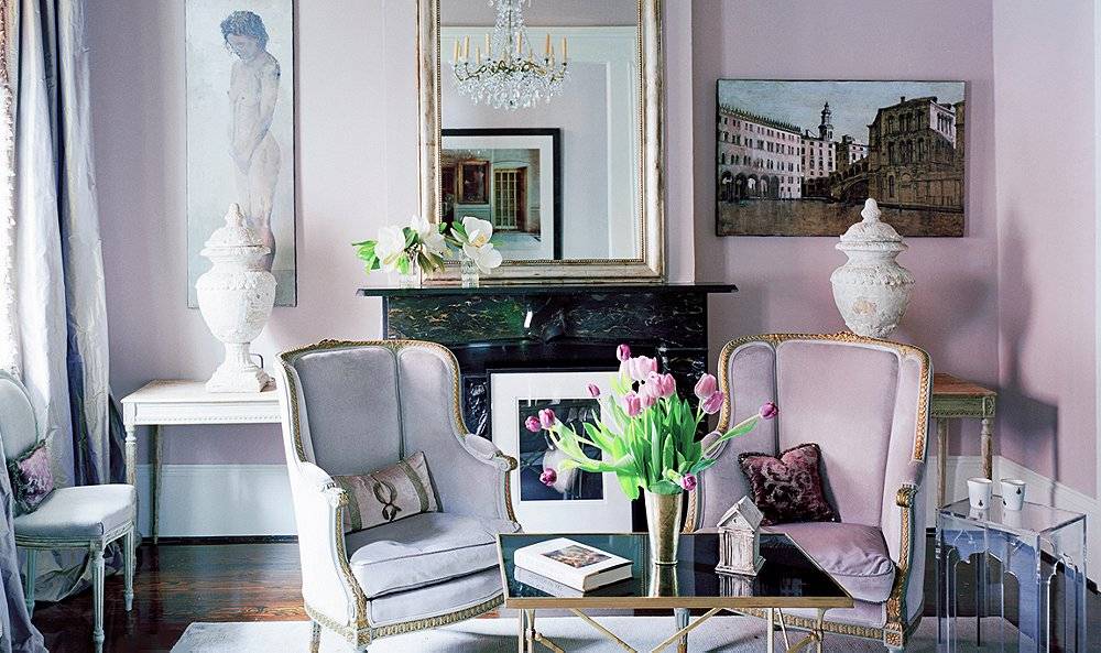 Эти фиолетовые цветы придают комнате загадку. Чтобы не затемнить пространство, на обоях не должен присутствовать крупный принт.