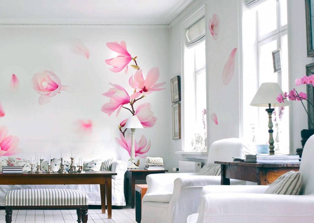 Это целомудренность и женское обаяние. Стены украшенные лепестками магнолии часто встречаются в декоре спальни.