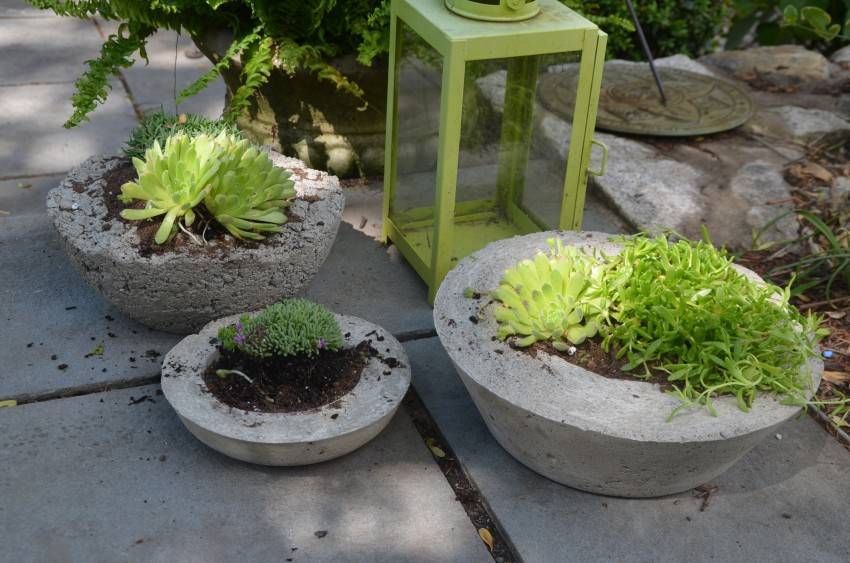 Горшки из цемента применяются для создания цветочных композиций на открытом воздухе. Для их изготовления применяют песок, цемент и воду в классических пропорциях 2:1:0,5. Для придания прочности готовому изделию рекомендуется применять армированный каркас, который целесообразен при изготовлении масштабных вазонов.