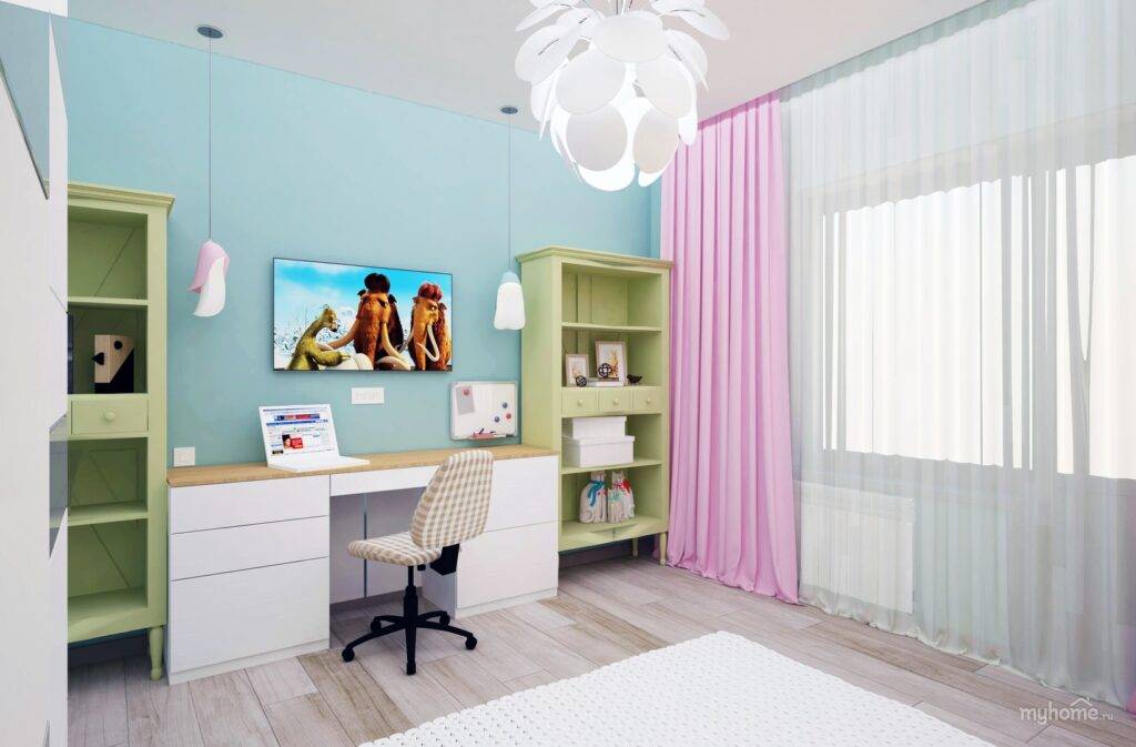 Розовый и зеленый. Еще одно небанальное сочетание, которое становится таким, если выбирать приглушенные или пастельные оттенки, например, мятный и бледно-розовый. Интерьер выглядит свежо и не начинает раздражать со временем. Он подходит как для маленькой девочки, так и для подростка.