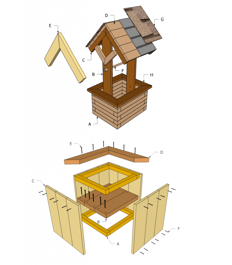 Наглядная схема того, как правильно сделать декоративный колодец для дачи своими руками