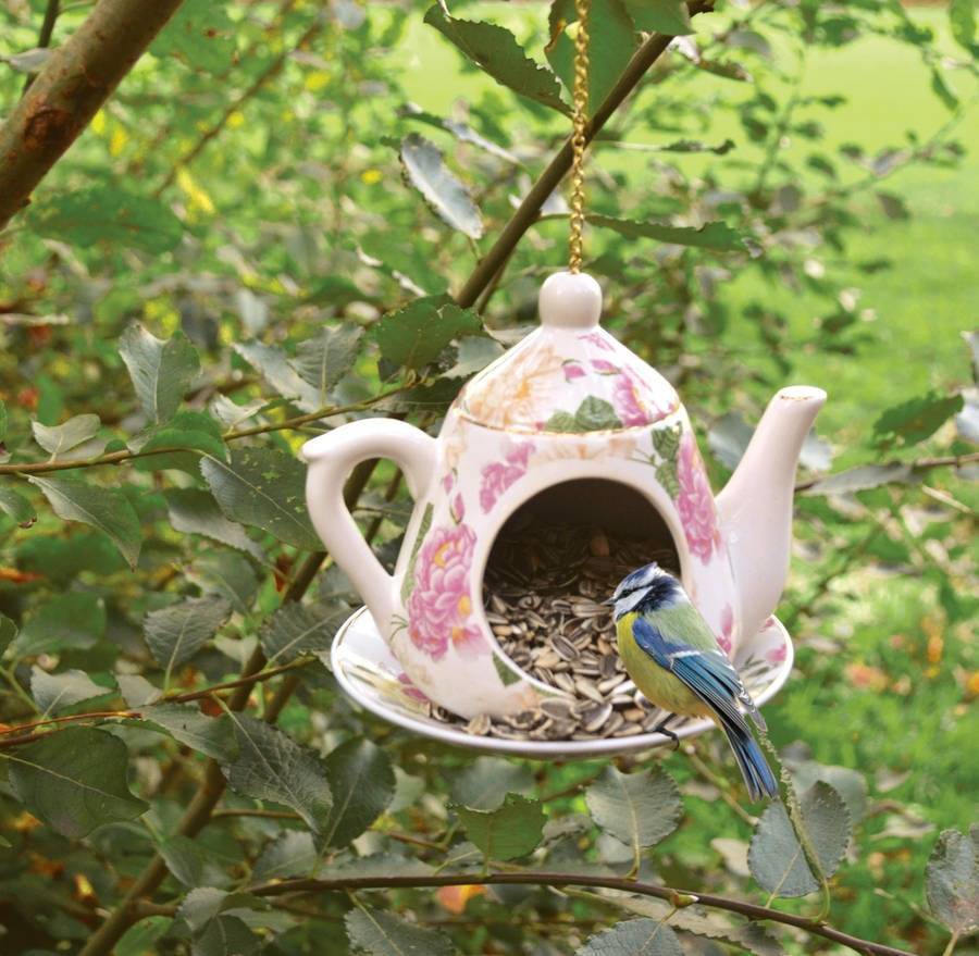 Здесь может пригодиться старая деревянная мебель, остатки досок. Очень своеобразно будут смотреться домики для птиц из старых больших сапожек. А если проявить фантазию, можно сотворить самое настоящее чудо из фарфоровых больших чайников, чашек, винных пробок и даже детского конструктора Лего.