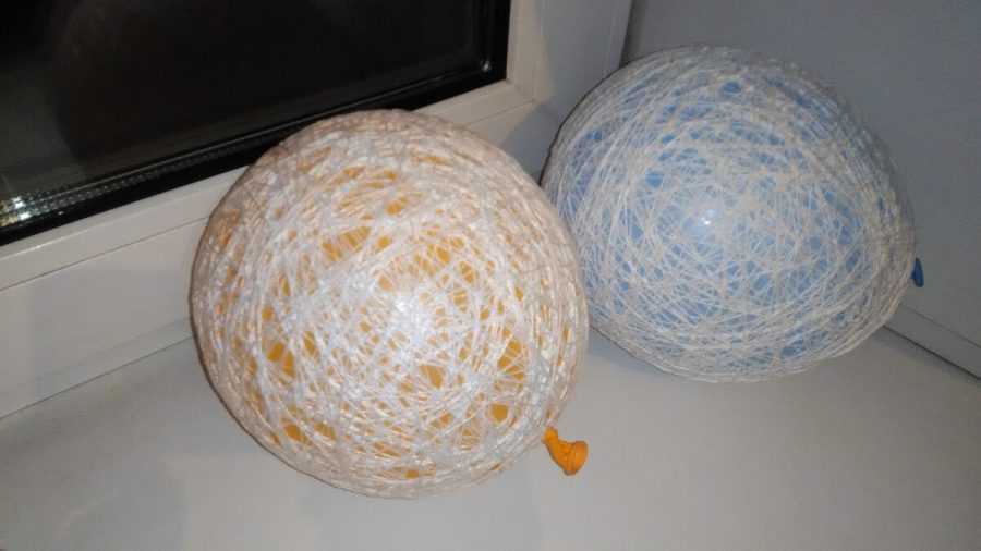 Нужно, чтобы весь шарик оказался опутанным пропитанными клеем нитками. По окончании наматывания на конце нитки нужно завязать узелок.