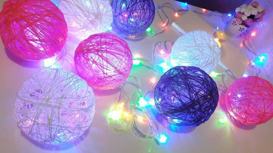 Разноцветные шары из ниток послужат прекрасным украшением праздника